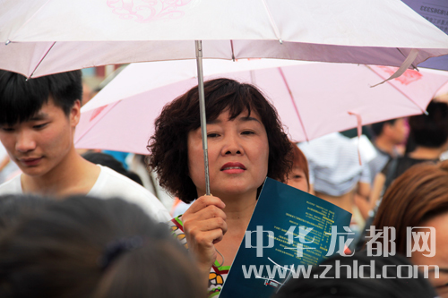 在考場(chǎng)外焦急等待考生考完出來(lái)的家長(zhǎng)。(戚永/攝)