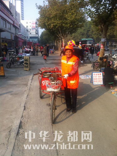 ????由于周口荷花市場北門附近有幾家經(jīng)營服飾的大型賣場和許多經(jīng)營各色小吃的店鋪,因而這里極具人氣。據(jù)說,每天從此北門經(jīng)過的市民超過10萬人。人一多,地面的衛(wèi)生狀況自然不容樂觀?!捌綍r(shí),我們是‘一班一人’清掃,但是到了節(jié)假日,人流量往往是平時(shí)的幾倍,垃圾量自然增多,我會(huì)和另外一位同事分頭打掃?!蓖跸架幷f。