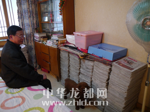 ????許登科是晚報的鐵桿粉絲。他訂報十年,收藏十年,十年的晚報被老人整整齊齊地擺放在房間里,形成了一面厚厚的“晚報墻”。 這其中包括2003年12月22日的《周口晚報》創(chuàng)刊號和2003年12月12日的試刊號。