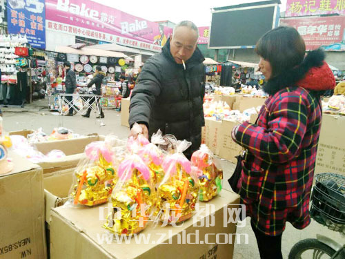 當(dāng)日12時30分許,記者在周口荷花市場看到,各式各樣的花燈擺在道路兩側(cè),不僅有各種卡通動物造型的塑料花燈,還有紙質(zhì)、絨布、綢布等材質(zhì)的花燈。2015年是農(nóng)歷乙未年,“金羊賀歲”、“羊羊得意”、“喜羊羊”等卡通羊造型的花燈尤為熱銷,售價一般在15元至30元?! ?/p>