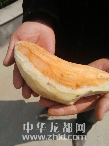 ?  近日,淮陽(yáng)縣居民林樹松買到了一塊“混血”紅薯,紅薯一半是牙白色,一半是橘紅色。整塊紅薯長(zhǎng)約23厘米,最粗處直徑約22厘米。因?yàn)閾?dān)心紅薯基因變異,林先生沒敢食用這塊紅薯。為此,記者采訪了周口師范學(xué)院生命科學(xué)與農(nóng)學(xué)學(xué)院院長(zhǎng)陳龍。陳教授說(shuō),紅薯是塊莖類作物,不像小麥、大豆那樣,它不是種子,所以基本上不存在基因變異的情況。一塊紅薯出現(xiàn)兩種顏色,應(yīng)當(dāng)是正常現(xiàn)象,市民可以食用?! ⊥韴?bào)記者 朱海龍 攝