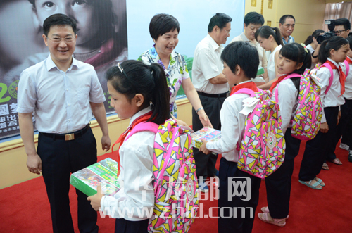 本報訊 為助力每一位貧困女孩實現(xiàn)美好的夢想,7月13日,2015年“圓夢女孩志愿行動周口行”啟動儀式在周口飯店舉行。啟動儀式上,有關(guān)領(lǐng)導不僅為志愿者頒發(fā)了證書,為志愿者隊伍授旗,還為太康縣圓夢女孩代表贈送了書包和圖書。