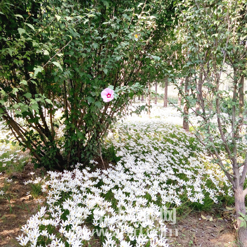 一朵朵白花入花溪,一朵紅花洞口嬉,九月入畫(huà)不遜春,滿街的微景秀大地。