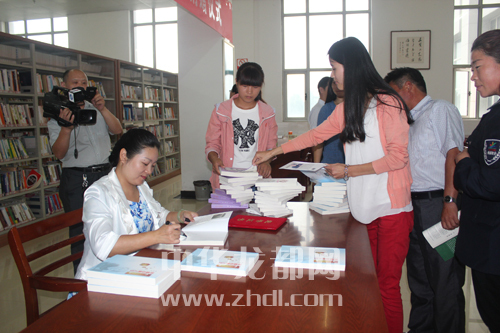 ????昨日16時,在市圖書館綜合閱覽室,市文化局曹克宏、市圖書館李佳和本報田維國、董雪丹等各單位相關(guān)負(fù)責(zé)人參加了捐贈儀式,曹克宏向柳韻頒發(fā)了愛心捐贈榮譽(yù)證書。捐贈儀式結(jié)束后,柳韻在現(xiàn)場舉行了簽字贈書活動(如圖)。面對讀者的熱情,柳韻一一簽字贈書,現(xiàn)場又簽贈系列圖書近百冊。