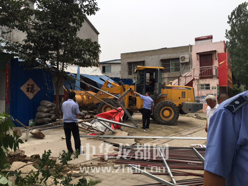 ????正當(dāng)拆除違章建筑物順利進(jìn)行之時,一家飯店老板順著梯子爬上了二層的違章棚棚頂,與城管隊員“對峙”,令拆除工作一度陷入僵局。通過對其及家人細(xì)致地宣傳與講解,最終,店主既心疼又懊悔地看著自家的違章棚變成一堆廢銅爛鐵。