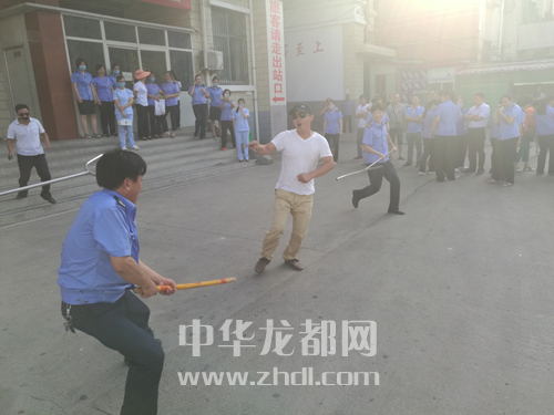 ????在防恐防暴的演練中,兩名手持兇器的歹徒在車(chē)站大廳里轉(zhuǎn)悠,車(chē)站值班站長(zhǎng)見(jiàn)此情況后,想方設(shè)法穩(wěn)定住兩名歹徒,隨后一邊安排工作人員疏散候車(chē)廳內(nèi)旅客,一邊組織工作人員拿起警棒、防爆叉與歹徒進(jìn)行搏斗(如圖四)。