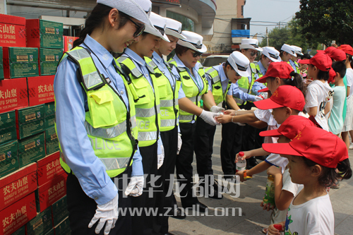 ????當(dāng)前,創(chuàng)建省級文明城市工作正在周口中心城區(qū)廣泛開展,整個(gè)城市越來越干凈美麗,城市文明程度不斷提升。8月15日上午,在八一大道和七一路交叉口,團(tuán)市委組織數(shù)十名志愿者和孩子協(xié)助交警維護(hù)交通秩序??吹浇痪⒁虩岬煤沽鳑驯?,孩子們紛紛將礦泉水送到她們手中。晚報(bào)記者 王凱 攝
