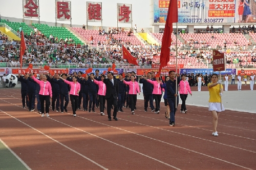 ????當日16時,國旗方陣、會旗方陣、彩旗隊、裁判員、運動員依次入場,一個個意氣風發(fā)的團隊引來現(xiàn)場觀眾陣陣掌聲和歡呼聲:周口川匯區(qū)代表團首先入場,他們步伐矯健,英姿勃發(fā);市委辦公室代表團精神抖擻,意氣風發(fā);市委宣傳部代表團邁著矯健的步伐走向主席臺……