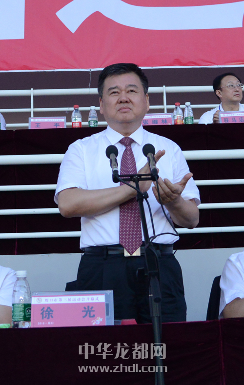 市委書(shū)記、市人大常委會(huì)主任徐光宣布周口市第三屆運(yùn)動(dòng)會(huì)開(kāi)幕。記者 王映 攝
