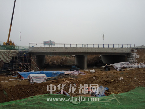 ????一橋,是互通立交的主體。整個(gè)立交橋凈高4.9米,有兩個(gè)橋洞,中間由寬1米的墻隔開(kāi),每個(gè)橋洞凈寬16米,設(shè)置單向雙車(chē)道和兩米寬的人行道。加上立交橋兩側(cè)各1米的墻寬,整個(gè)立交橋?qū)?5米。同時(shí),立交橋位置向北的周口大道兩側(cè)將增設(shè)寬2.5米的人行道。