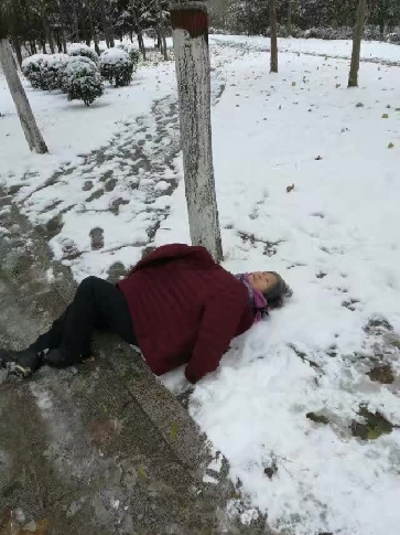 ????11月23日早上,大雪過后的周口銀裝素裹。在一家教育培訓(xùn)機(jī)構(gòu)上班的老師單啟航像往常一樣來到周口中心城區(qū)濱河公園晨練。7時(shí)許,單啟航在濱河路(市中心醫(yī)院北面)看到一位上了年紀(jì)的老大娘躺在雪地上,一臉痛苦。