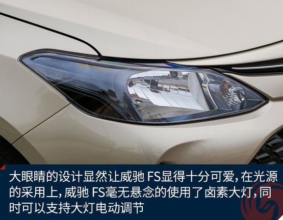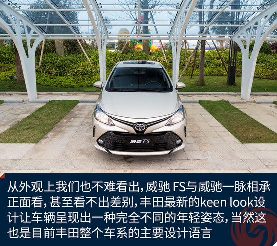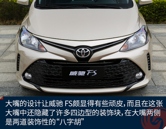 從外觀上我們也不難看出,威馳 FS與威馳一脈相承,正面看,甚至看不出兩車的差別,豐田最新的keen look設計讓車輛呈現(xiàn)出一種完全不同的年輕姿態(tài),當然這也是目前豐田整個車系的主要設計語言,就是要讓車輛更顯年輕運動。大嘴的設計讓威馳 FS頗顯得有些頑皮,而且在這張大嘴中還隱藏了許多四邊型的裝飾塊,在大嘴兩側是兩道裝飾性的“八字胡”,除此之外是一雙大大的眼睛,這一副調皮可愛的模樣,相信不少年輕人都會喜歡。