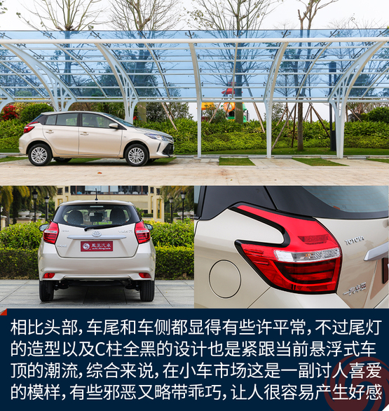 相比頭部,車尾和車側都顯得有些許平常,不過尾燈的造型以及C柱全黑的設計也是緊跟當前懸浮式車頂?shù)某绷鳎C合來說,在小車市場這是一副討人喜愛的模樣,有些邪惡卻又略帶乖巧,讓人很容易產生好感。