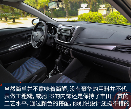 當然簡單并不意味著簡陋,沒有豪華的用料并不代表做工粗糙,威馳 FS的內飾還是保持了豐田一貫的工藝水平,并且通過黑色與銀色相互的搭配,你別說,這個內飾的設計還挺不錯的。