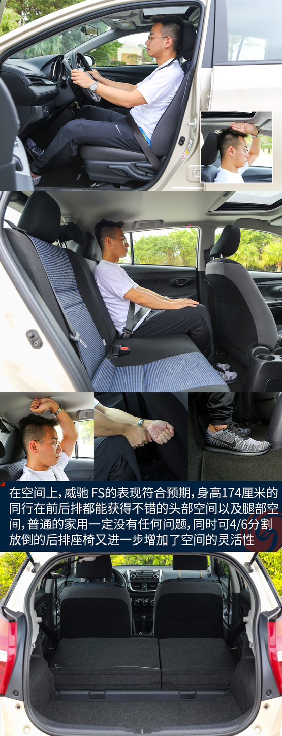 在空間上,威馳 FS的表現(xiàn)符合預期,身高174厘米的同行在前后排都能獲得不錯的頭部空間以及腿部空間,普通的家用一定沒有任何問題,同時可4/6分割放倒的后排座椅又進一步增加了空間的靈活性,即使是放置一些大件的行李或物品也不會尷尬。