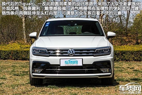 換代后的Tiguan,一改此前圓潤柔美的設計思路,采用了大眾全新家族化外觀風格,線條犀利,雕塑感極強,進氣格柵帶有規(guī)律性的突起造型,鍍鉻飾條向兩側延伸至頭燈內(nèi)部,可謂是大眾車系百看不厭的元素。進口版本提供了國產(chǎn)后見不到的R-Line套件,亮黑色飾板與倒梯形設計頗具原廠改裝氣息,同時前臉面積也被進一步擴大,給人中型SUV的既視感。