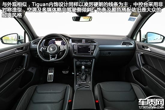 與外觀相似,Tiguan內(nèi)飾設計同樣以凌厲硬朗的線條為主,中控臺采用非對稱造型,空調(diào)及多媒體略向駕駛側傾斜,飾條及顏色搭配依舊是大眾的經(jīng)典風格,雖然大面積覆蓋軟性搪塑材質(zhì),但手感稍硬,不過接縫相當緊實,足以展現(xiàn)進口車風范。