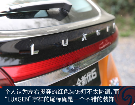 車身的側(cè)面依然是溜背的造型,這也是這臺車最大的特點。車尾的造型也基本沒有太大的變化,但是細看卻有著質(zhì)一般的飛躍,車燈為全紅色,車標變成了“納智捷”的英文字母,牌照架周邊的質(zhì)感明顯比老款好看了許多,不過個人對這個左右貫穿的紅色裝飾保留意見,認為沒有它或許更好。
