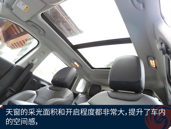 新指南者橫向空間和腿部空間表現(xiàn)都不錯(cuò),在頭部空間上略有欠缺,后排在坐直的情況下,頭部空間比較壓抑,幸好全景天窗可以彌補(bǔ)這一點(diǎn),指南者的全景天窗擴(kuò)展了車內(nèi)的采光面積及視覺廣度。