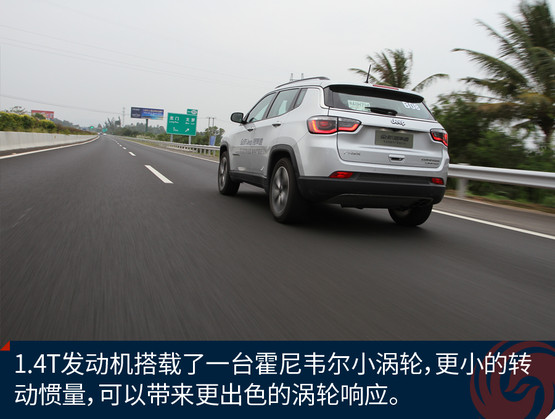 1.4T的版本很遺憾沒(méi)有配備四驅(qū)系統(tǒng),注重公路性能是它的全部,在城市路面上駕駛,指南者表現(xiàn)的很輕松輕盈,電子助力方向盤手感很輕。全新Jeep指南者還動(dòng)態(tài)底盤——四輪獨(dú)立懸掛+主動(dòng)自適應(yīng)減震系統(tǒng)。這套減震系統(tǒng)能夠在微秒間自動(dòng)感應(yīng)路面回饋,實(shí)時(shí)改變阻尼大小,從“最軟”到“最硬”只需0.2秒??梢愿惺艿降氖沁@套減震器對(duì)于路面的坑洼抑制的非常好,濾震出色,車廂內(nèi)感受到的晃動(dòng)很少。在彎道上的側(cè)向支撐相對(duì)就弱一點(diǎn),這也是魚和熊掌的原因。
