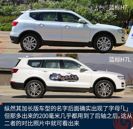 提到加長,我腦子中的第一反應(yīng)是軸距加長幾十甚至上百毫米,然而,哈弗藍(lán)標(biāo)H7L并不是這樣??v然其加長版車型的名字后面確實出現(xiàn)了字母「L」,但那多出來的200毫米幾乎都用到了后軸之后,這從二者的對比照片中就可看出來。