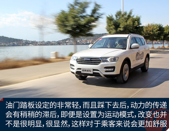 既然是7座車型,藍(lán)標(biāo)H7L在調(diào)校方面也更加注重舒適,這一點從油門踏板可以很明顯的感覺到。油門踏板設(shè)定的非常輕,而且踩下去后,動力的傳遞會有稍稍的滯后,即便是設(shè)置為運(yùn)動模式,改變也并不是很明顯,很顯然,這樣對于乘客來說會更加舒服。相比于油門踏板,剎車踏板則力度適中且比較線性。