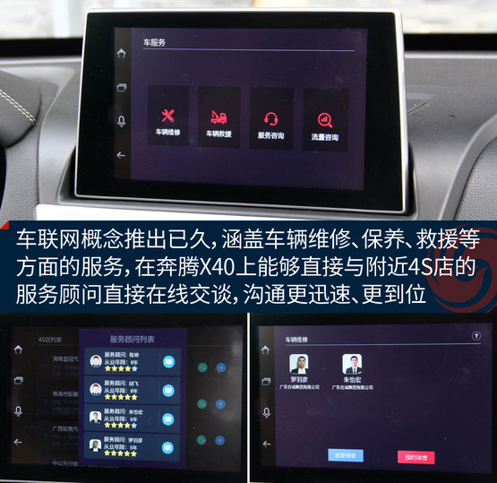 沒錯,你可能見過帶語音控制的功能,但還沒見過識別這么靠譜的;你可能見過能陪聊的,但還沒見過這么貧的;你可能見過支持裝APP的,但還沒見過集成社交平臺,能直接找車友、交朋友,甚至在地圖界面發(fā)彈幕的;你可能見過帶保養(yǎng)等服務的,但還沒見過能直接跟4S店的服務代表在線交談的......也許功能上還有需要完善的細節(jié),但不可否認,奔騰X40在車聯(lián)網(wǎng)層面開辟了一個新的方向。