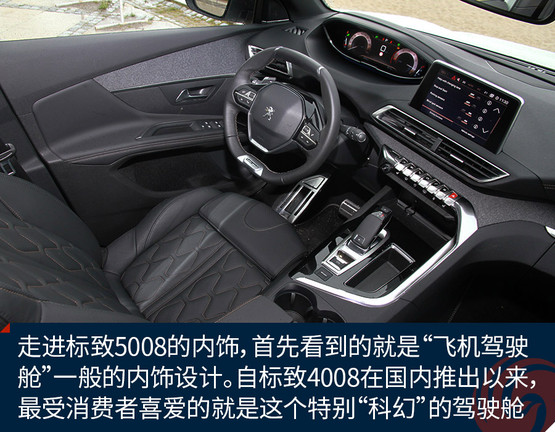 走進標致5008的內飾,首先看到的就是標致最新的“飛機駕駛艙”一般的內飾設計。自標致4008在國內推出以來,最受消費者喜愛的就是這個特別“科幻”的駕駛艙,相同的設計也保留在了標致5008之上。