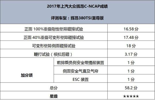 ????????輝昂成為“國(guó)家名片”,出色的安全性能同樣至關(guān)重要。在2017年度C-NCAP第一批車型的評(píng)價(jià)結(jié)果中,輝昂獲得58.2的高分,是C-NCAP 2015年版規(guī)則實(shí)施以來的最高分。