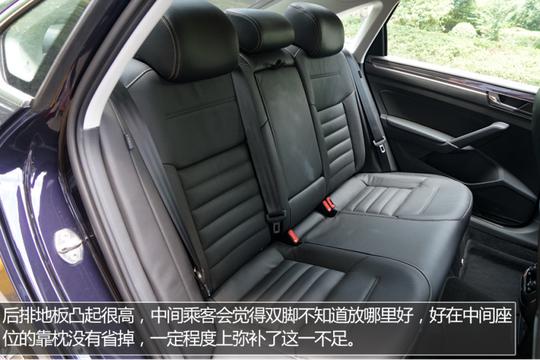 ????????全新帕薩特的內(nèi)部乘坐空間還是挺大的,美中不足的是后排地板的凸起比較高,好在后排中間座位配有頭枕,而且座椅整體設(shè)計(jì)的比較寬大,乘坐舒適性還是有保證的。