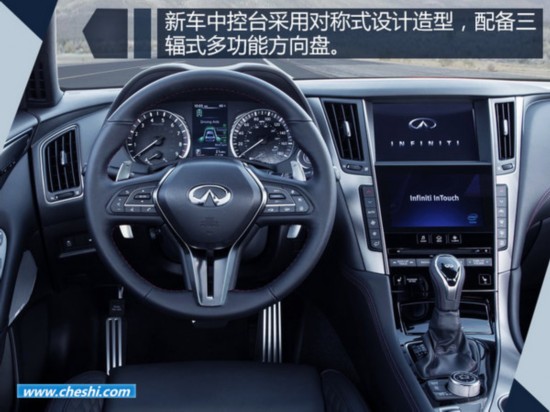 全新英菲迪尼內(nèi)飾配有三輻式多功能方向盤,中央控制臺為對稱式造型,采用上下雙顯液晶屏幕。此外,新車還配備了撥片式換擋、一鍵啟動、電子手剎等配置。