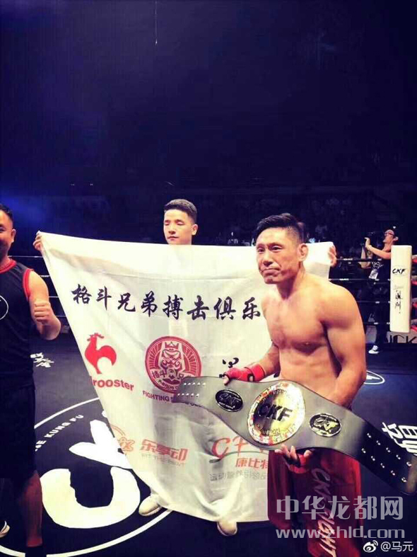 ??? 當(dāng)日,國(guó)內(nèi)格斗圈有名的姚紅剛、姚志奎兄弟第二次聯(lián)袂出陣CKF國(guó)際搏擊澳門(mén)站比賽,分別爭(zhēng)奪66公斤、61公斤洲際拳王金腰帶。比賽中,姚紅剛面對(duì)比自己年輕近十歲、高出自己10厘米的對(duì)手,表現(xiàn)沉著冷靜,開(kāi)局不久抓住機(jī)會(huì)成功抱倒對(duì)手,形成側(cè)控位,在對(duì)手起橋逃脫的空擋瞬間轉(zhuǎn)換為騎乘位,此后對(duì)手拼盡全力雙手搭扣防止姚紅剛的地面砸拳,但為時(shí)已晚,雨點(diǎn)般的拳頭落在了對(duì)手身上,對(duì)手被迫放棄比賽。第一回合姚紅剛tko對(duì)手獲勝,獲得個(gè)人第二條洲際綜合格斗金腰帶!