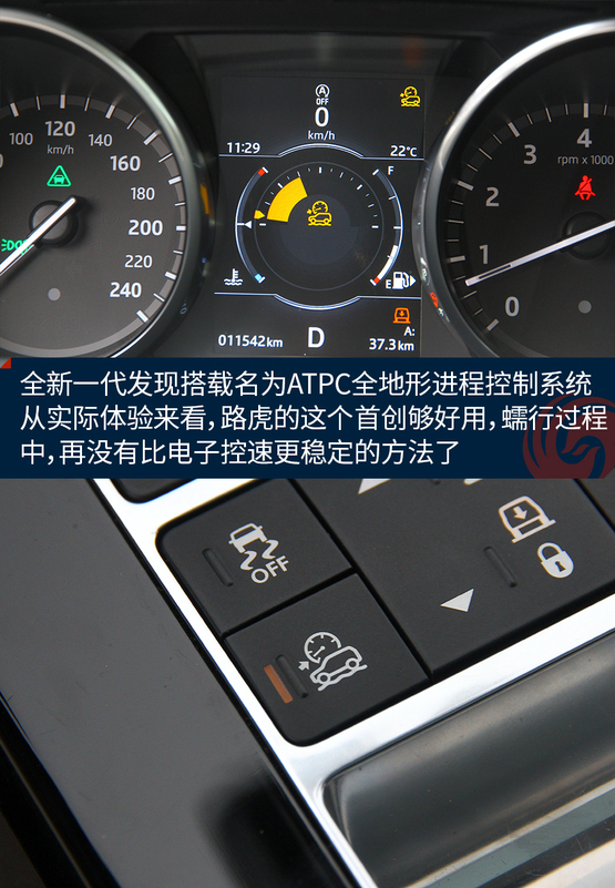 全新一代發(fā)現(xiàn)搭載名為ATPC全地形進程控制系統(tǒng),簡單可以理解為這套系統(tǒng)將一般道路上的定速巡航概念移植到了越野功能上,設定好預計速度,車輛便可相對應地自動調整油門或剎車。