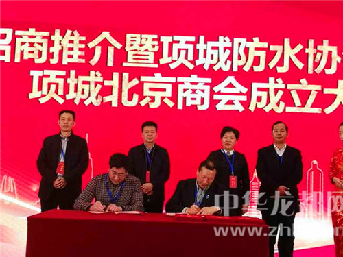 劉體峰、王玉玲、張曉在會上分別為新當(dāng)選的項城防水協(xié)會北京辦事處、項城北京商會的相關(guān)負(fù)責(zé)同志頒發(fā)證書及匾牌,并見證了新成立的辦事處、商會與部分知名企業(yè)的合作簽字儀式。