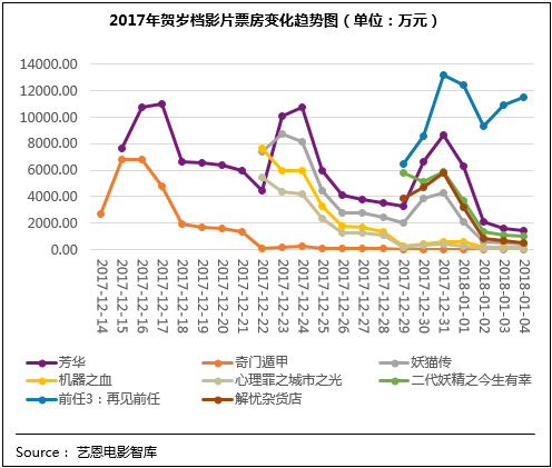 于12月29日上映的國產(chǎn)喜劇IP“前任系列”的第三部作品《前任3:再見前任》整體表現(xiàn)也較優(yōu)異,影片用接地氣的風(fēng)格闡釋愛情與成長的主題,讓人捧腹又直戳人心,滿意度80.7分居檔期第二位;在良好口碑支撐下,影片票房也表現(xiàn)出了逆市上揚的巨大潛力。