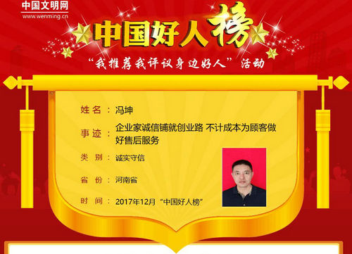 馮坤,男,中共黨員,1974年8月生,河南省周口市太康縣張集鎮(zhèn)人,就職于河南省四通鍋爐有限公司。“待人要有誠意,做事要講誠信,做事要先把人做好。”是馮坤創(chuàng)業(yè)成功的秘訣,就是誠信。