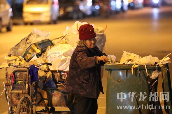 如果天氣允許,每天傍晚6點(diǎn)半到深夜11點(diǎn)之間,在淮陽縣西關(guān)弦歌西路和新民南路交叉口附近,你都會見到一位身材矮小、騎著或推著一輛破舊三輪、上年紀(jì)、一只眼睛失明的老奶奶,在一個(gè)又一個(gè)垃圾桶前停下,翻揀廢舊紙箱、塑料瓶。把揀拾的廢品放上三輪車,老人還不忘用隨身帶的鐵锨清理好凌亂的垃圾,再到下一個(gè)垃圾桶邊繼續(xù)翻揀。