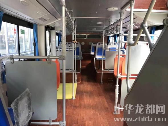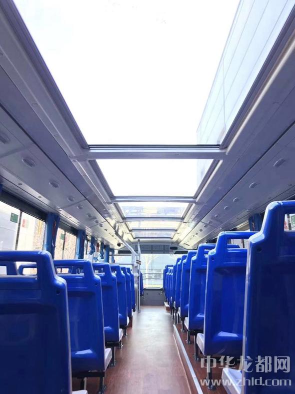 記者順著步梯來到第二層,視野頓時開闊起來。原來該層頂部設(shè)計有6塊全景天窗,乘客坐在第二層不但不會有壓抑的感覺,反而會視野開闊,便于游覽周口街景。記者注意到,在全景天窗下面有遮陽板,乘客可以用來遮擋陽光。