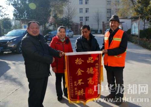 “失主丟了東西肯定很著急?!眲⒐椧贿呉贿叺龋诤L(fēng)中一等就是3個(gè)小時(shí)。終于,貌似失主的張先生和妻子行色匆忙的來(lái)到皂角樹(shù)廣場(chǎng),劉公綏看到兩人比較著急,便主動(dòng)上前詢(xún)問(wèn)。經(jīng)詢(xún)問(wèn)后確定他們就是失主,當(dāng)即物歸原主。為表達(dá)謝意,三天后,失主張先生把一面寫(xiě)有“拾金不昧,品德高尚”的錦旗親手送到劉公綏手上。