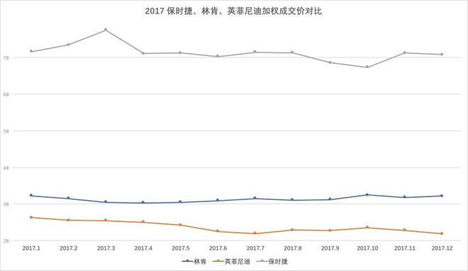 保時捷、林肯、英菲尼迪銷量在5-10萬之間為第三陣營,保時捷品牌比較節(jié)制,對銷量一直沒有過多追求,銷售方式與其他豪華品牌不同,多以訂單方式銷售,經(jīng)銷商利潤連續(xù)兩年行業(yè)中為最好;全進口車型為主的林肯成交價在39萬上下,今年銷量增速最快,價格走勢也非常好,但產(chǎn)品進入銷售中期,與其他品牌新款車型對比不占優(yōu)勢;英菲尼迪今年沒有太多走量新車,國產(chǎn)車型也面臨改款,成交價在30萬上下,隨新款QX50上市,Q50L改款,銷量和成交價有望走高。