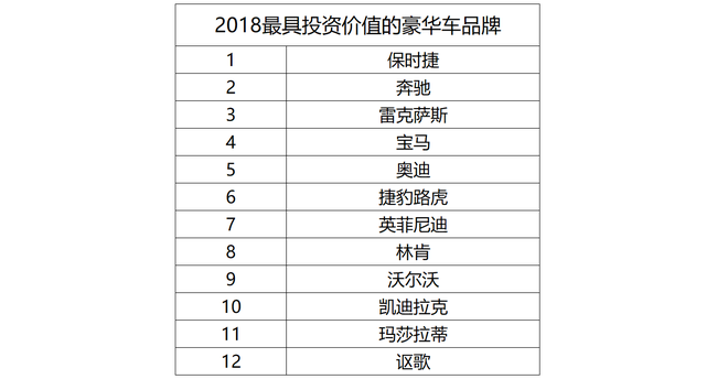 2018年經(jīng)銷商值得投入的品牌推薦保時捷、奔馳、雷克薩斯;具有增長潛力的品牌推薦寶馬、奧迪、捷豹路虎;謹慎關注的品牌有瑪莎拉蒂、謳歌。