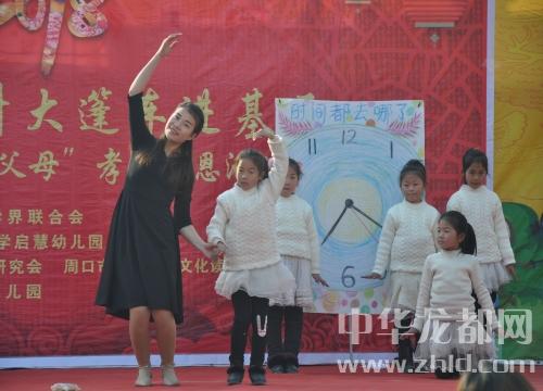 兩點半,舞蹈《盛世花開》拉開了感恩演出活動的帷幕。周口新紀(jì)元幼兒園、商水縣國學(xué)啟慧幼兒園、國學(xué)啟慧小學(xué)3所學(xué)校的師生們,為村民們帶了精彩的表演?!抖Y儀之邦》、《游子吟》《重回漢唐》等節(jié)目,傳統(tǒng)漢服表演和深情吟誦仿佛將大家?guī)Щ氐竭b遠的古代,感受孝道悠久歷史,親身體會先人們的孝順之舉。情景劇《婆婆也是媽 》中靈動活潑、入情入理的表演逗得村民哄堂大笑;詩朗誦《媽媽你知道嗎》里呼喚媽媽的稚嫩童聲、母女深情相擁的場情引得臺下觀眾淚濕眼眶;節(jié)目《趁父母還在》演員聲情并茂的表演惹得臺下老人一陣陣唏噓落淚。