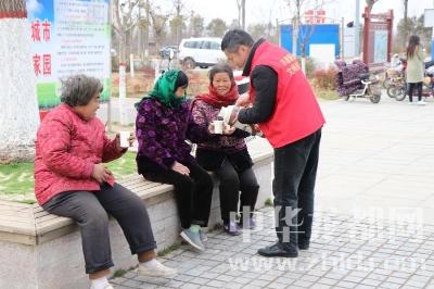 細(xì)心的志愿者們還為健身、散步、游玩的市民準(zhǔn)備了開水和杯子,為他們驅(qū)走寒意、溫暖雙手、滋潤心田?!鞍澈涸诩乙矝]想著給我倒杯水喝啊,恁還大老遠(yuǎn)給我送來!”接過志愿者手中的開水,一位老人十分激動。