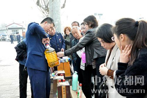 活動現(xiàn)場分為投訴咨詢受理區(qū)、假冒偽劣商品展示區(qū)、宣傳板面展示區(qū),通過分區(qū)域展示經(jīng)檢大隊和12個工商所查繳的大量的假冒偽劣商品,現(xiàn)場向廣大群眾講解辯假識劣常識,傳播科學(xué)的消費理念和消費安全知識,提高消費者的法律意識和維權(quán)意識?;顒庸渤鰟尤藛T66人、宣傳車12輛,制作宣傳展板7塊,發(fā)放法律法規(guī)宣傳資料5000余份,現(xiàn)場受理消費投訴28件,取得了良好的社會效果。