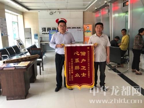 中華龍都網(wǎng)訊(周口報(bào)業(yè)全媒體記者 付永奇 通訊員 高少輝)5月24日上午,商水縣化河鄉(xiāng)村民史學(xué)習(xí)和村支書一同來到商水農(nóng)商銀行化河支行,為該支行送來一面“儲(chǔ)戶衛(wèi)士 心系群眾”的榮譽(yù)錦旗,感謝該支行幫其找到丟失的現(xiàn)金。