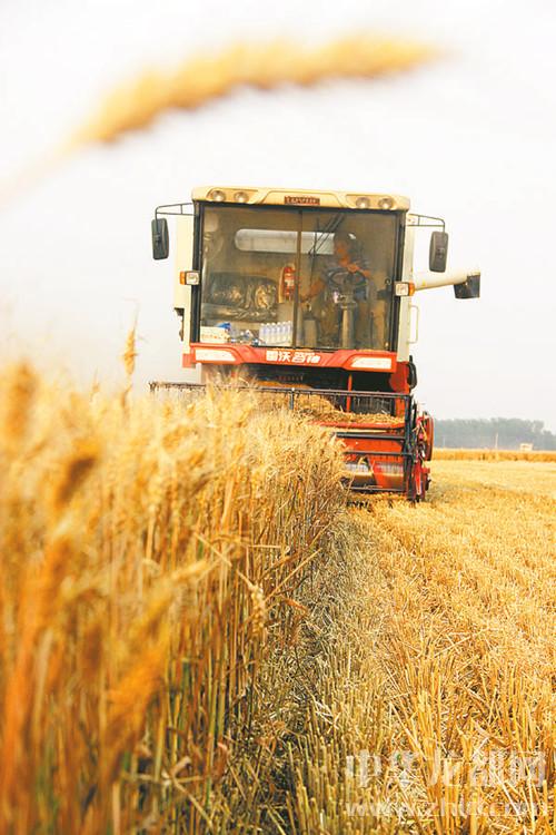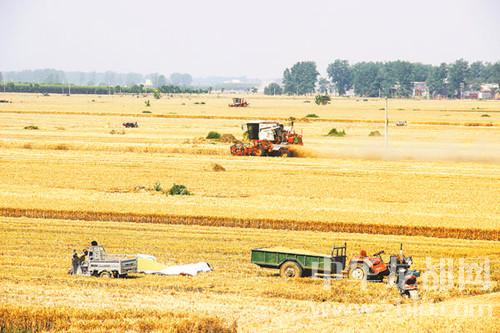 現(xiàn)在我市麥?zhǔn)找呀猜?。收獲時,縱橫交錯的麥田一片金黃,把鄉(xiāng)村裝點得格外美麗。收割機在麥田中穿梭,陣風(fēng)吹過,麥浪隨風(fēng)起舞,猶如一幅田園畫卷。呂耀光 攝