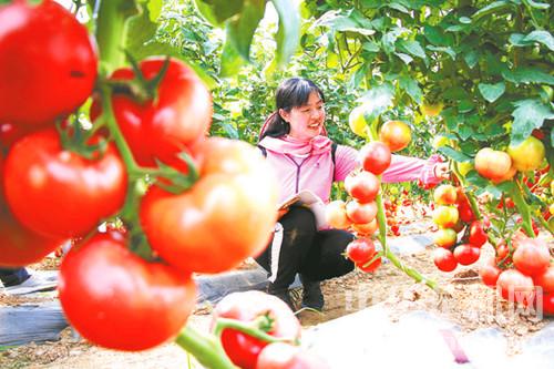 依托河南農(nóng)業(yè)大學專家團隊,扶溝縣蔬菜研究院研發(fā)出400多個番茄新品種,通過集中展示讓種植戶優(yōu)中選優(yōu),并實施對貧困戶購買種苗優(yōu)惠50%、特困戶免費供應的優(yōu)惠政策,帶動206戶貧困戶實現(xiàn)脫貧。圖為工作人員在記錄番茄新品種的試驗數(shù)據(jù)。谷志方 攝