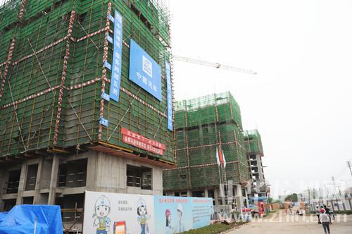 當(dāng)日10時許,記者在施工現(xiàn)場看到,機械轟鳴,塔吊林立,,雖然天下著小雨,可施工現(xiàn)場仍然焊花飛舞,工人們干勁沖天,正在緊張地施工,來來往往的車輛不斷運進建材,好一派熱火朝天的施工景象。