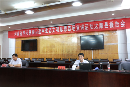 7月26日,河南省學(xué)習(xí)貫徹習(xí)近平生態(tài)文明思想百場(chǎng)宣講活動(dòng)太康縣報(bào)告會(huì)在縣綜合樓會(huì)議室舉行。省委宣講團(tuán)成員、省委宣傳部理論教育講師團(tuán)調(diào)研員曾琰珉主講,太康縣委書記王國(guó)璽主持并與該縣四個(gè)班子領(lǐng)導(dǎo)及副處級(jí)以上干部和縣鄉(xiāng)兩級(jí)負(fù)責(zé)同志及相關(guān)人員共同聆聽了報(bào)告。