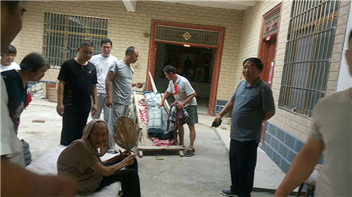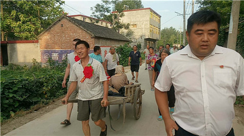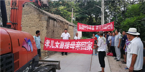 當(dāng)日早上,秋渠鄉(xiāng)高小橋行政村牛橋和孫大莊自然村,鄉(xiāng)村干部打著橫幅、孝順兒、媳胸帶紅花,用架子車?yán)先耍竺娓鴩^的村民,通過(guò)隆重“接老人回家”活動(dòng),激勵(lì)更多人孝老愛親。